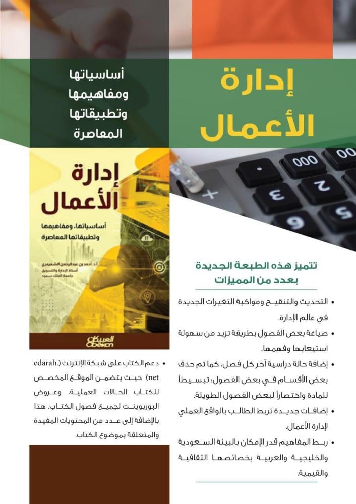 اسم الكتاب : إدارة الأعمال : أساسياتها، ومفاهيمها، وتطبيقاتها المعاصرة